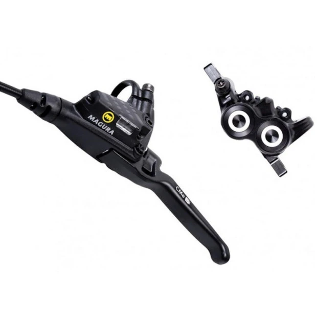 Le frein à disque hydraulique Magura CMe5 a été spécialement étudié pour les vélos à assistance électrique. Il est notamment particulièrement adapté aux exigences techniques de l’ABS des moteurs Bosch. La conception axiale à faible entretien permet de gagner de la place dans le cockpit tandis que les étriers à quatre pistons offrent une grande puissance et une progressivité optimale de freinage.