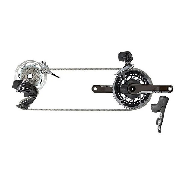 Avec le mini groupe SRAM Red eTAP AXS HRD 2×12 et son système de freinage à disques Flat Mount entrez dans le troisième millénaire cycliste. Ce groupe sans fil (eTAP) vous offrira un confort de conduite et des performances optimales à chacune de vos sorties.