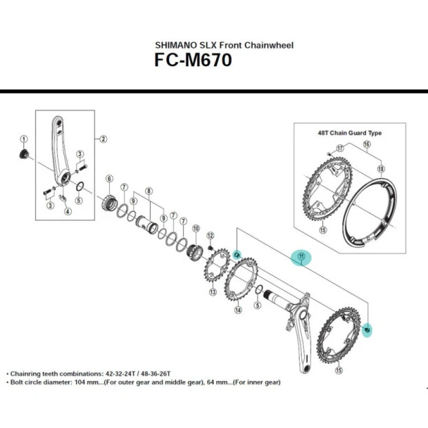 Shimano : FC-M670, FC-M675 : 42 – 32